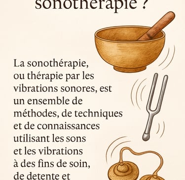 est un ensemble de méthodes, de techniques et de connaissances utilisant les sons et les vibrations à des fins de soin, de détente et d’harmonisation.